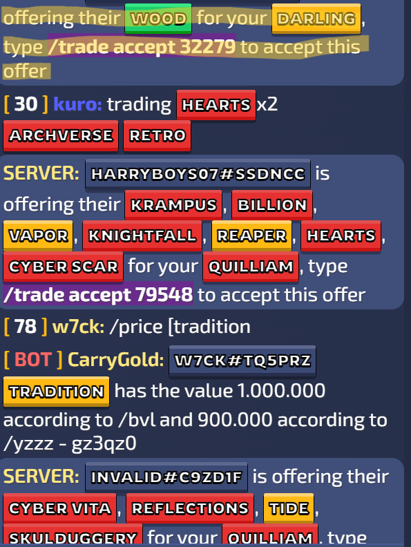 This is where you will trade with other people. I also use another tampermonkey script for easier trade accepting: Easier Trade Accept (press purple, delete+enter twice).