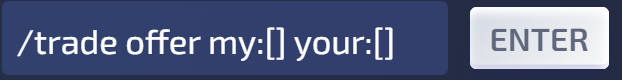 To offer a trade do /trade offer {User ID} my:[yourItem1],[yourItem2],[yourItem3] your:[theirItem1],[theirItem2],[theirItem3]